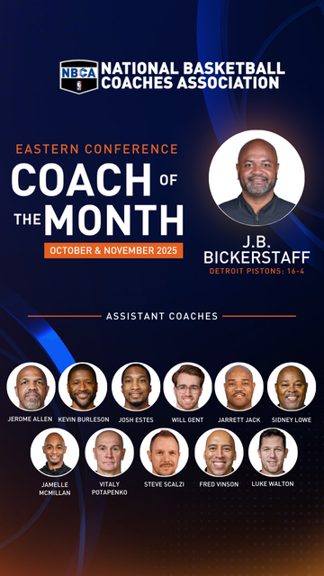 J.B. Bickerstaff & Pistons Staff Win 2025-26 COTM for October & November