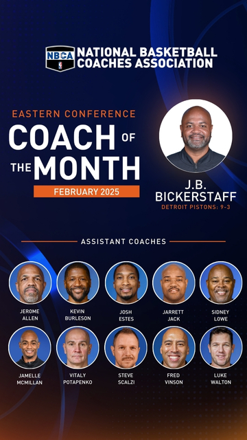 J.B. Bickerstaff & Pistons Staff Win 2024-25 COTM for February