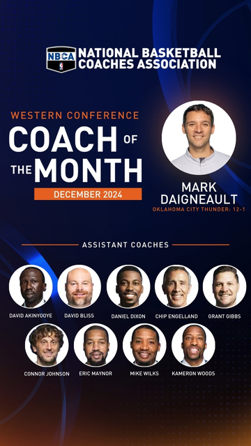 Mark Daigneault & Thunder Staff Win 2024-25 COTM for December
