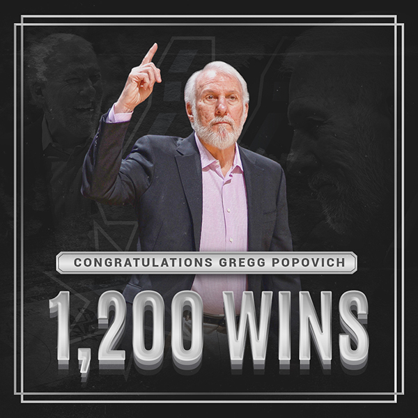 Spurs Head Coach Gregg Popovich Reaches 1,200th Career Win Milestone
