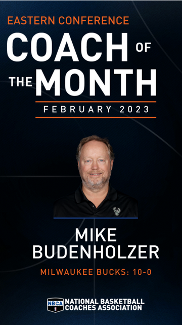 Eastern Conference Coach of the Month, Mike Budenholzer led the Milwaukee Bucks to a league best 10-0 record in February. The
