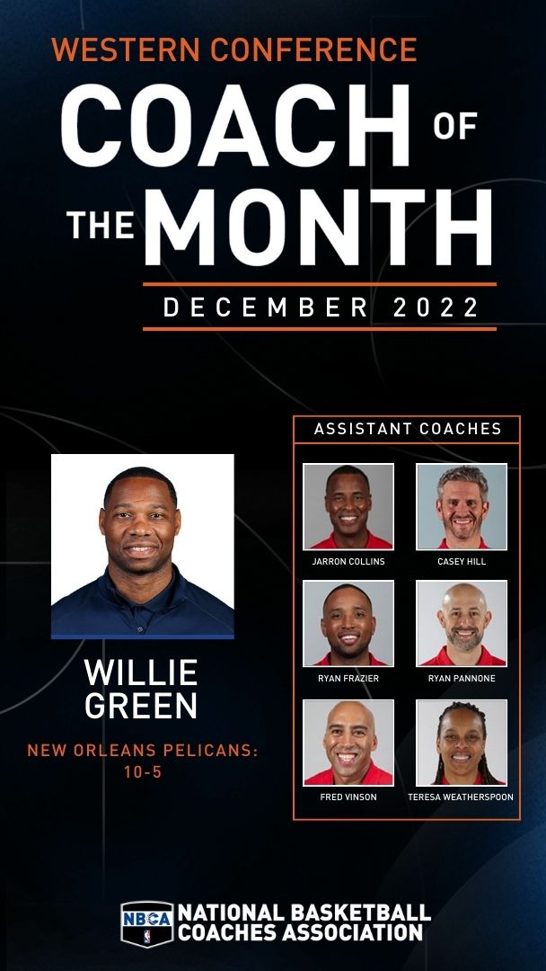Western Conference Coach of the Month Willie Green led the New Orleans Pelicans to a 10-5 record in December. During